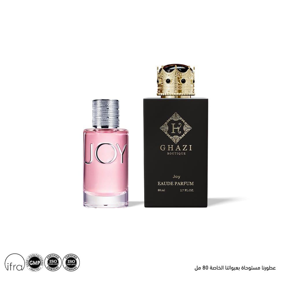 عطر جوي هو عطر نسائي مستوحى من الماركة العالمية الشهيرة جوي ديور، وتتكون تركيبته العطرية من البارغموت و اليوسفي و الورد و الياسمين والعديد من المكونات الطبيعية النقية الأخرى بتركيز نقي وكثيف ليمنح عطر جوي ابتسامة واناقة مشرقة لامثيل لها.